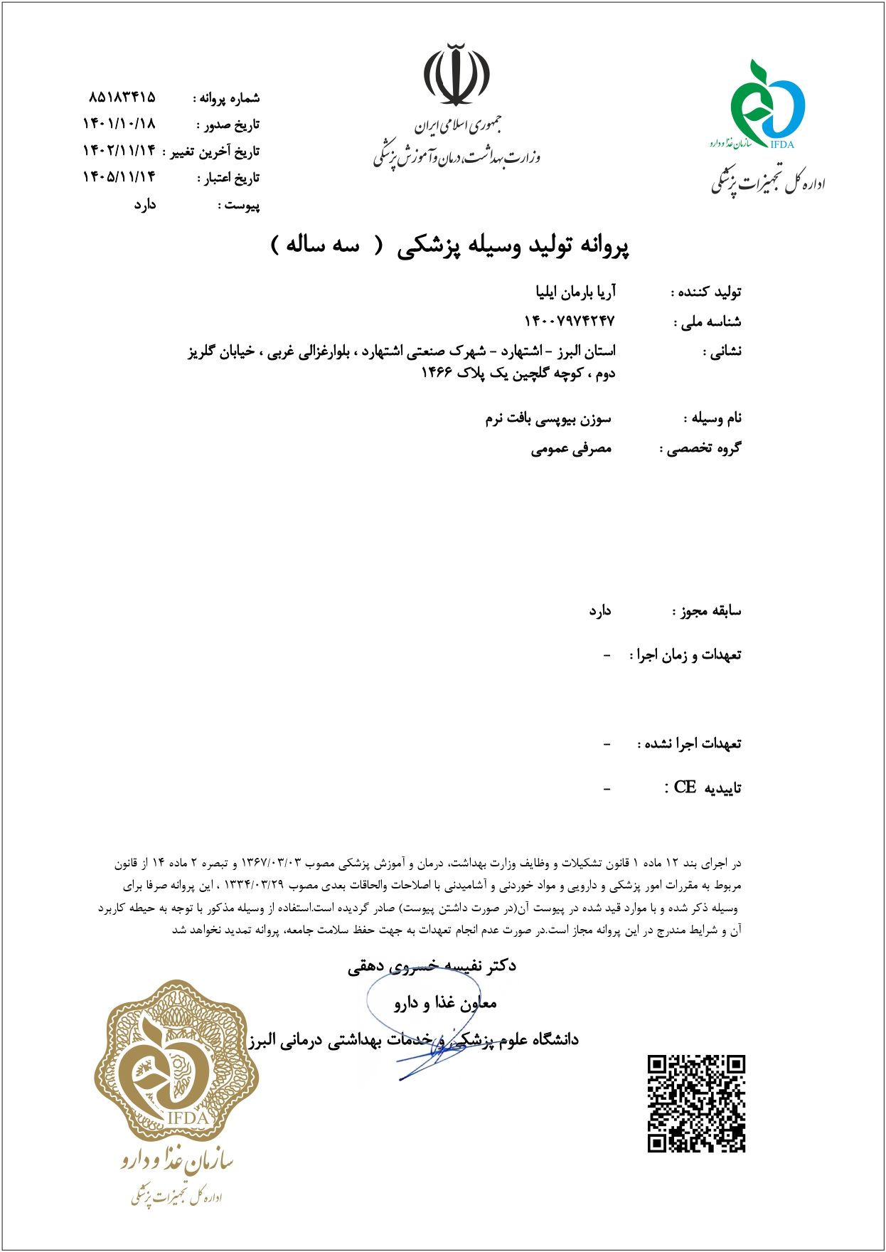 شرکت آریا بارمان ایلیا با هدف تولید تجهیزات پزشکی تخصصی در حوزه سوزن های پزشکی آغاز به کار نموده و چشم انداز خود را بی نیاز کردن کشور از واردات محصولات این سبد کالایی تعیین کرده است